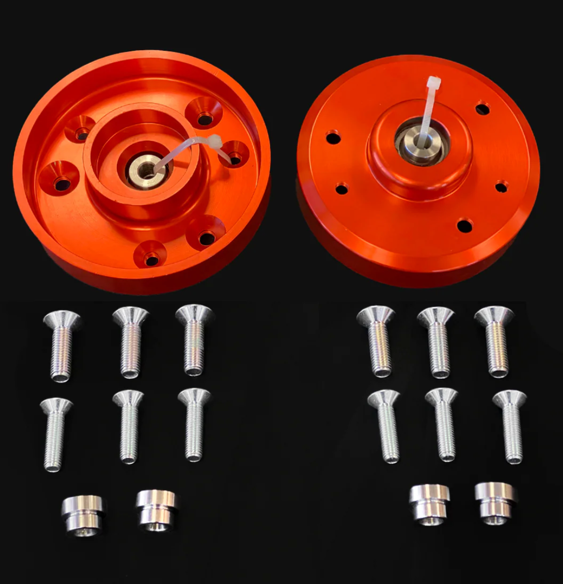 • The main mount that supports the shaft on the stock top hats has a rubber bushing that's notoriously known for being the main weak point that causes factory top hat to fail - especially if they have after-market springs.