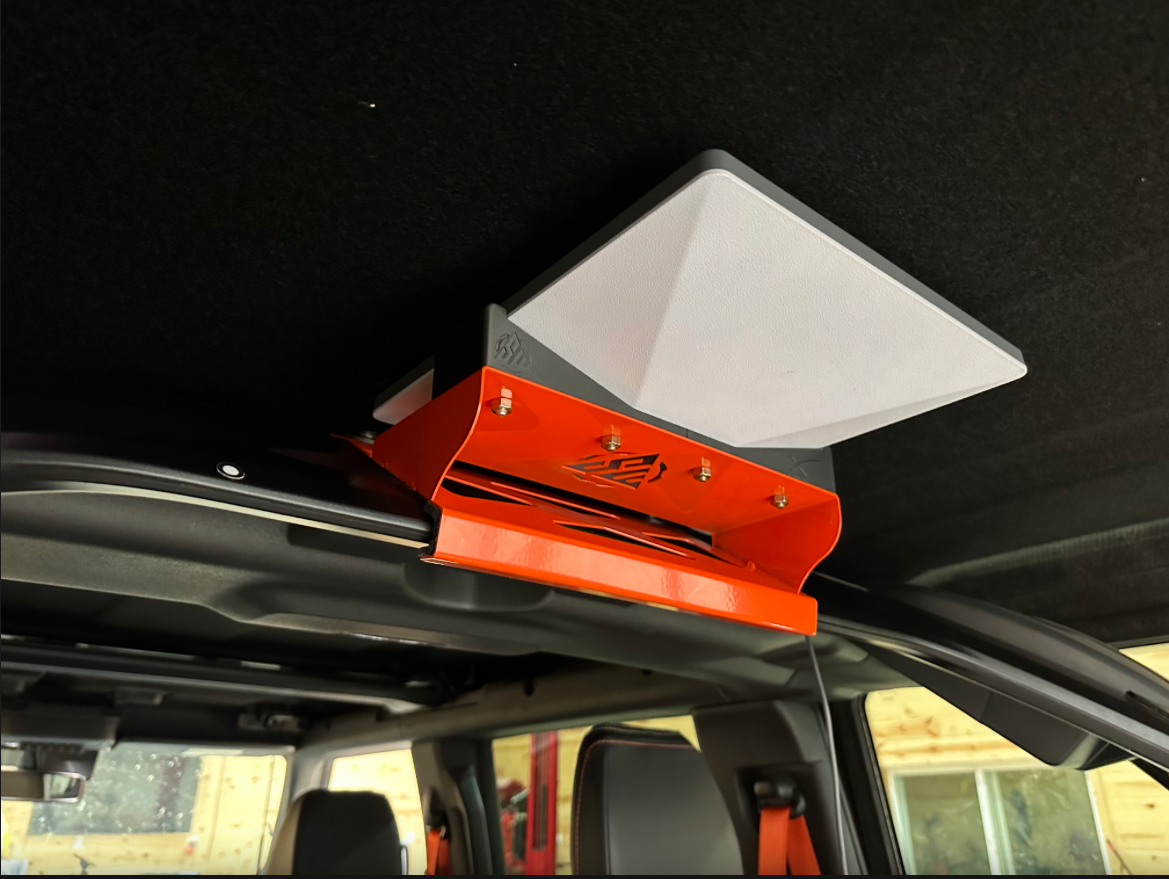 Here is a super slick and easy way to mount a Starlink Mini to your Ford Bronco Raptor. Just loosen the two bolts on the roll-bar, slide the bracket on, and you're done! Sealed connector included so you just slide the Starlink Mini onto the mount and you're good to go. Works perfectly through the roof (hard or soft-top).