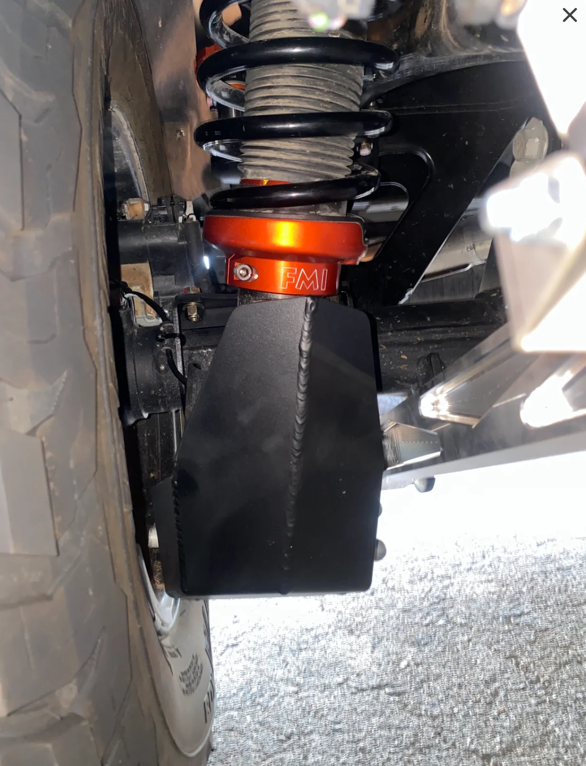 - Protects the bottom of the shock and the rear axle mounts from rock damage